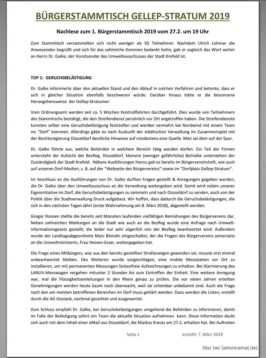 Beginnen möchte ich mit dem Hinweis, dass in der Nachlese zum Bürgerstammtisch am 27.2. einiges zur Geruchsbelästigung besprochen wurde. Einfach dem Link folgen und TOP 1 lesen :saint:
