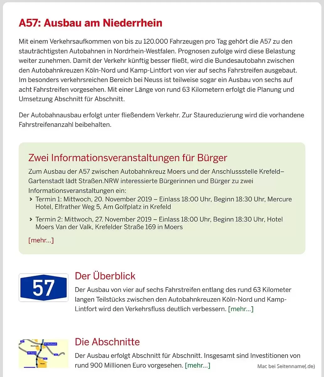Quelle & weiterlesen: strassen.nrw.de vom 00.00.0000 --> A57: Ausbau am Niederrhein