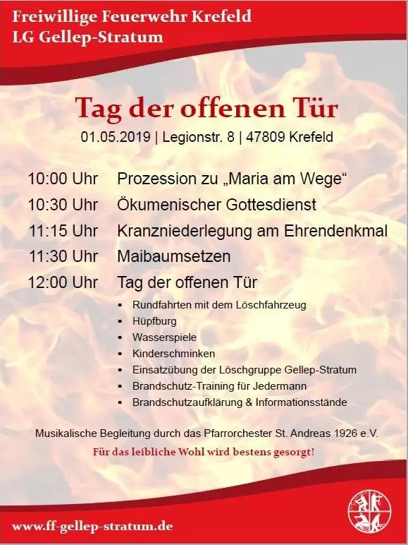 Am 1. Mai findet wieder das traditionelle Stiftungsfest statt. Daher lädt die Freiwillige Feuerwehr Gellep-Stratum zum ersten "Dorf-Open-Air-Fest" des Jahres ein (wie meistens, gell?) ![]()