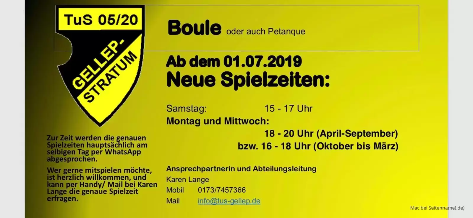 TUS GELLEP - BOULE Öffnungszeiten