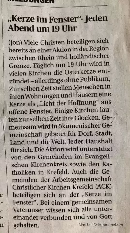 --> URSPRUNG: "Statt Gottesdienst: Wie eine Kerze im Fenster zur Gebetsaktion wurde" :daumen: