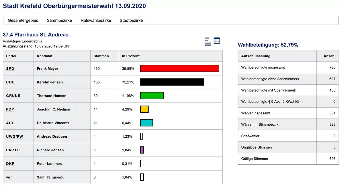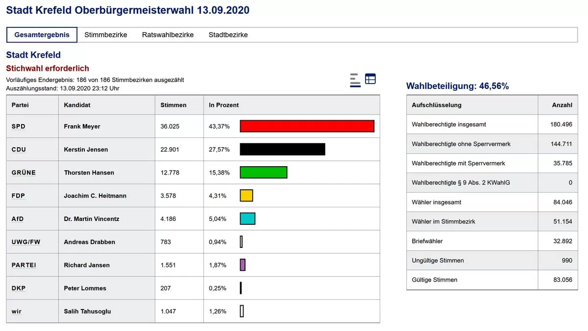 --> Wahlergebnispräsentation Stadt Krefeld Oberbürgermeisterwahl