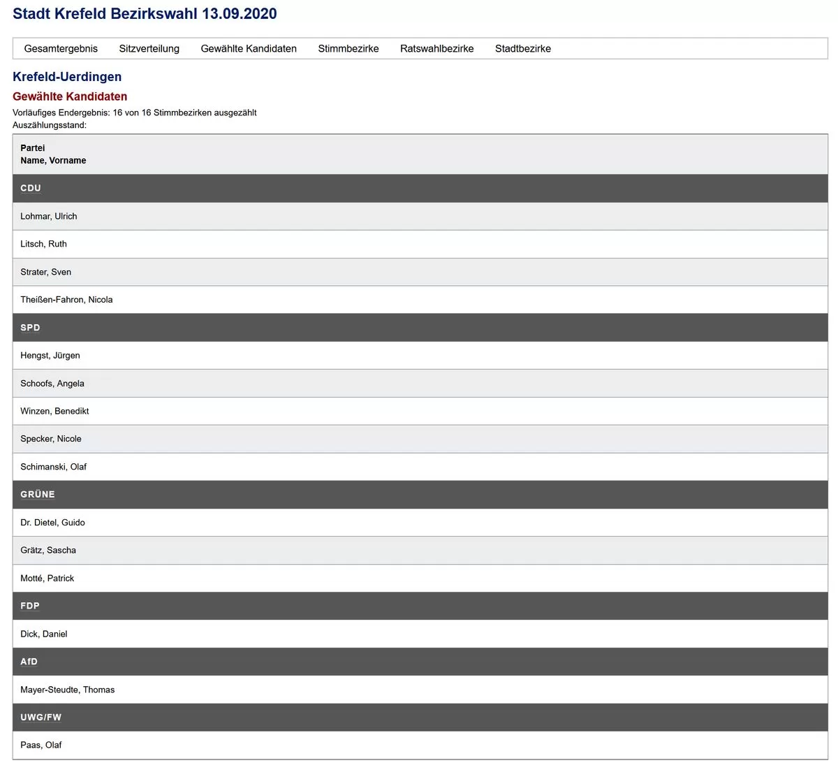 --> Die Ergebnisse für die Stadt Krefeld :thumbup: