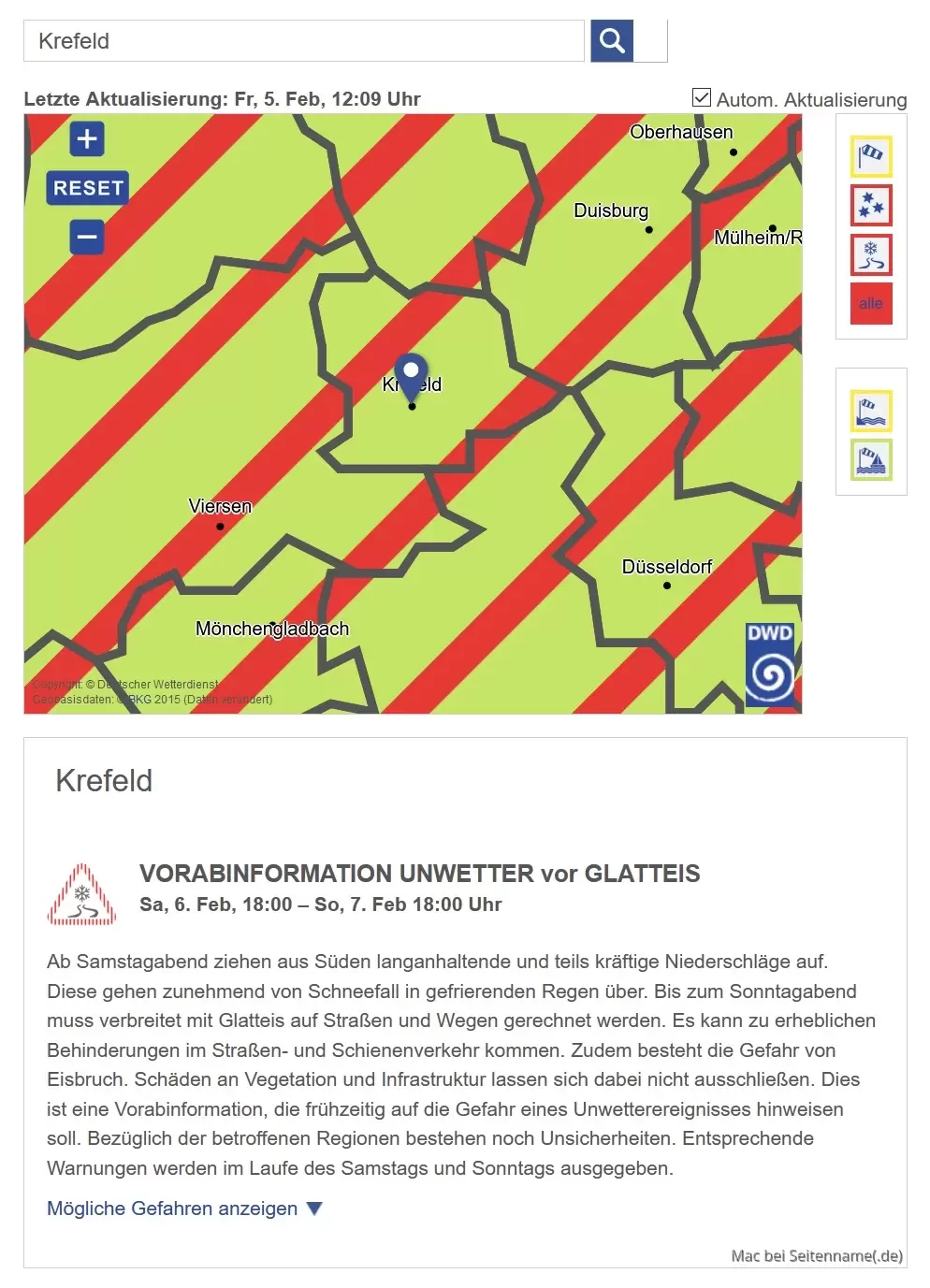 Quelle, Screeny & weiterlesen: DWD.de vom 5.2.2021 -> VORABINFORMATION UNWETTER vor GLATTEIS