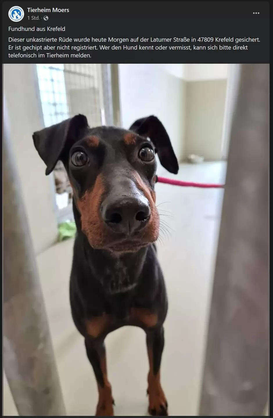 Vor ein paar Stunden wurde auf der Latumer Str. (Alt-Gellep / die Ecke unseres Castell) ein Hund gefunden, gechipt, aber nicht registriert.