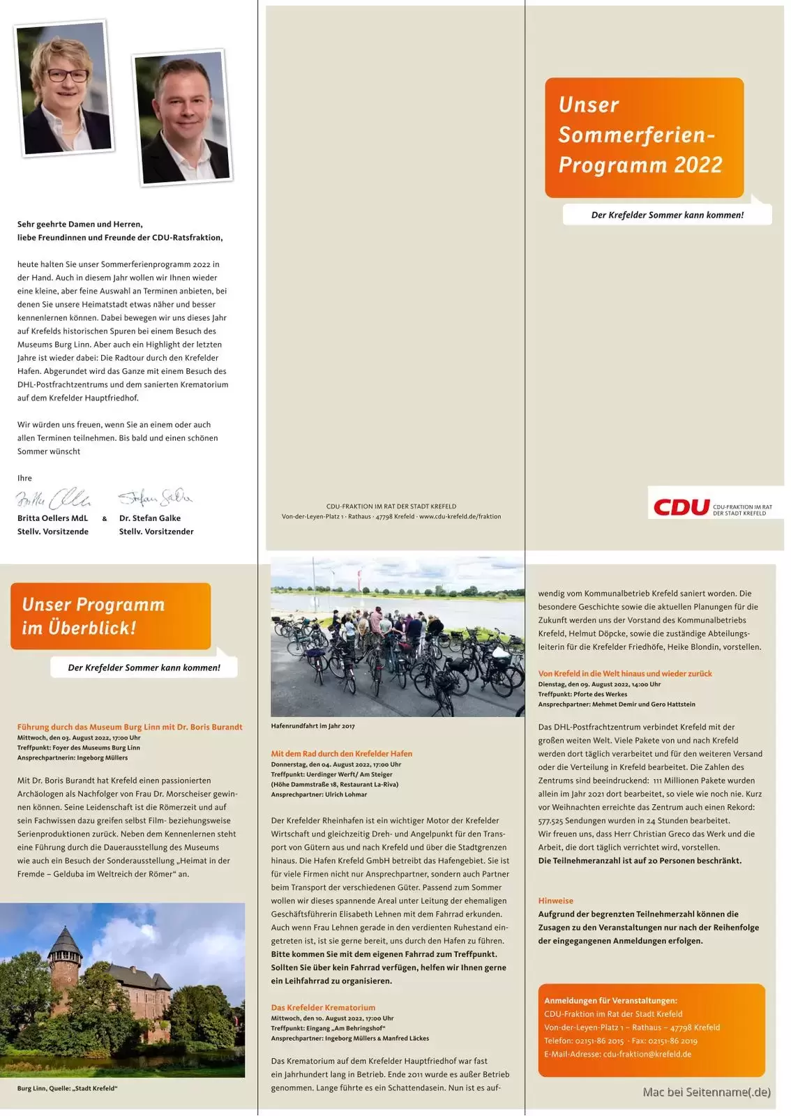 ZitatDie CDU Krefeld bietet ein Sommerferienprogramm an