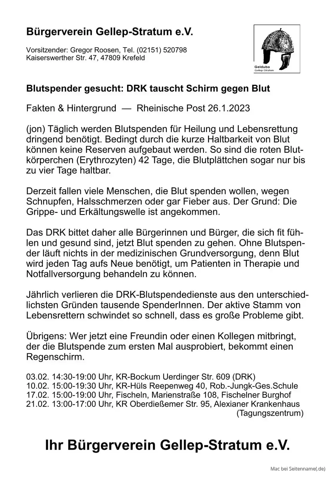 03.02. 14:30-19:00 Uhr - KR-Bockum Uerdinger Str. 609 (DRK)