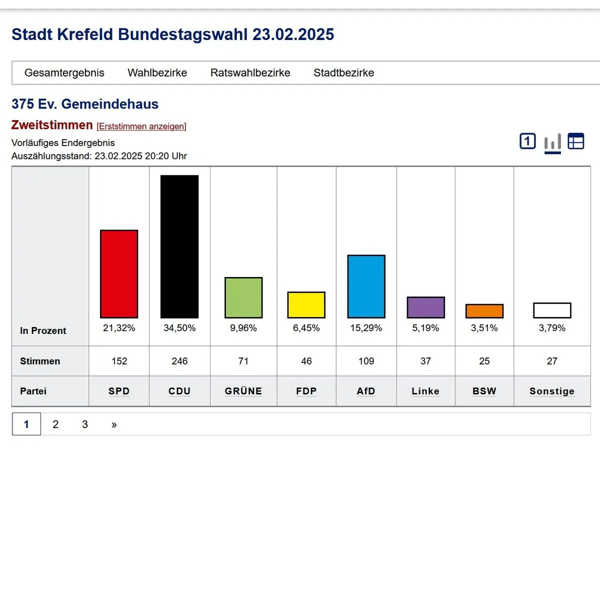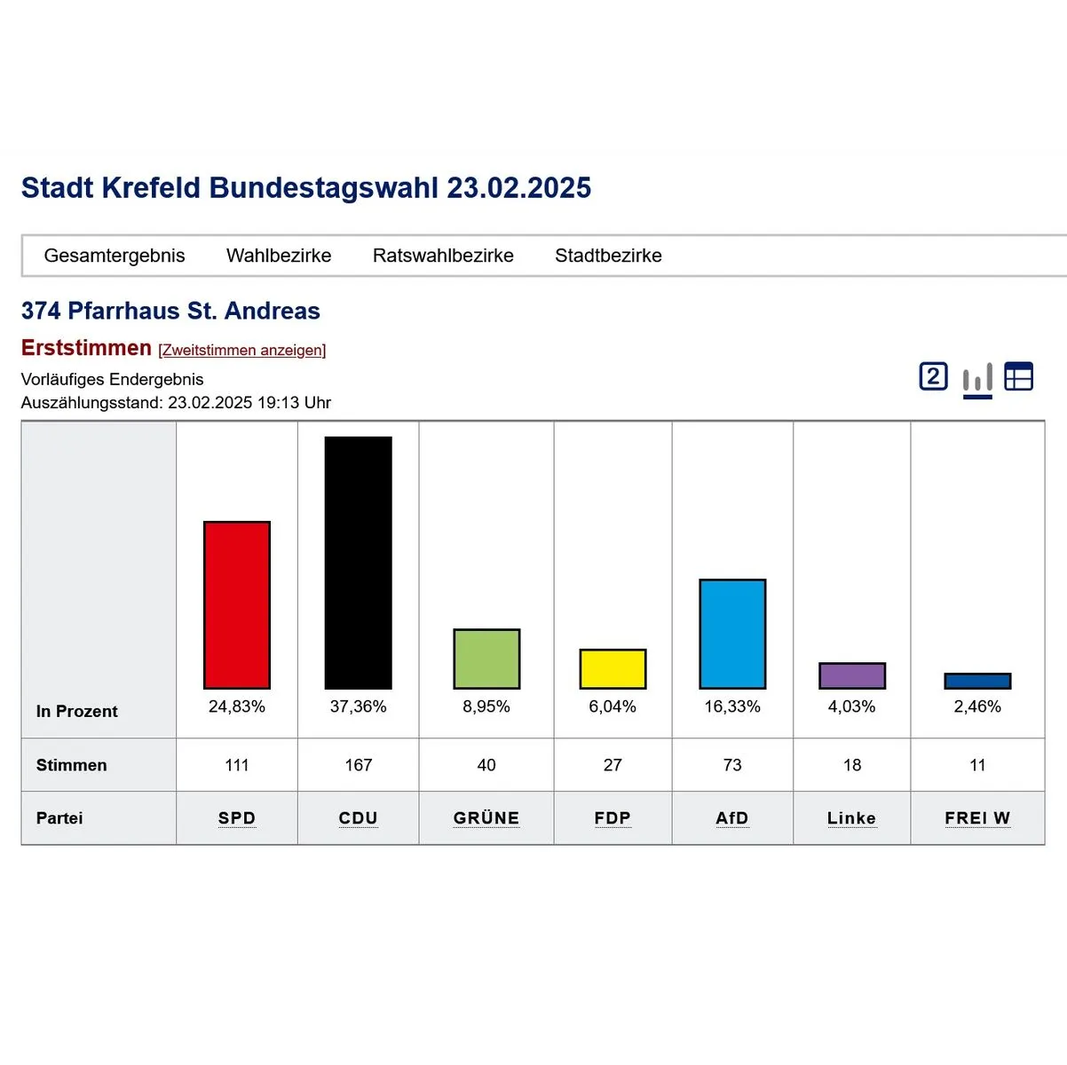 Wer den Ausgang für Krefeld verfolgen möchte, der kann das auf folgender Seite beobachten: