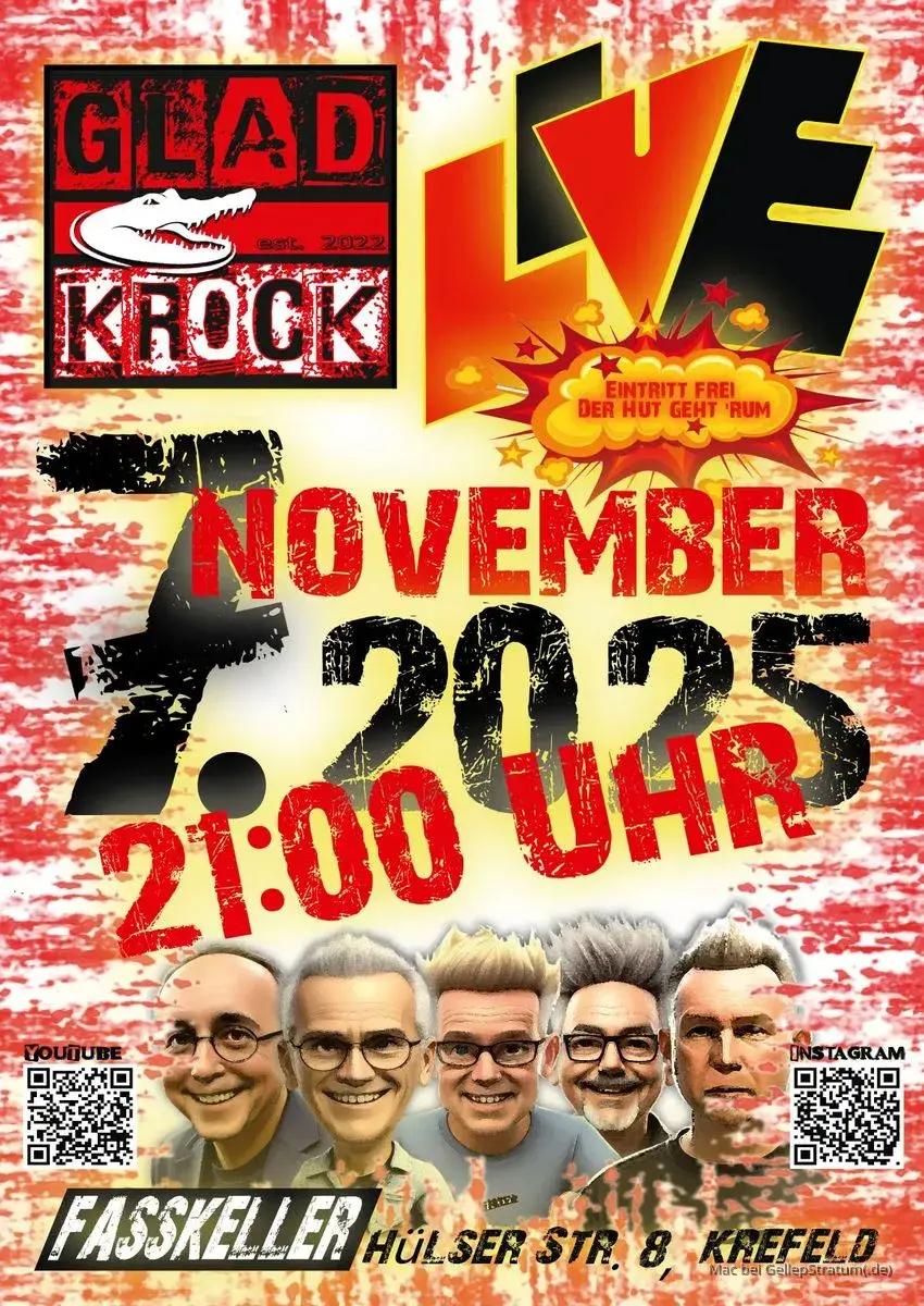 Am 7. November 2025, ab 21 Uhr, gibt es einen Auftritt der Band im Fasskeller an der Hülser Straße 8 in Krefeld. Der Eintritt ist frei. ![]()