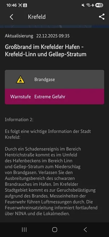 ZitatFeuerwehreinsatz - Brand im Krefelder Hafen gelöscht
