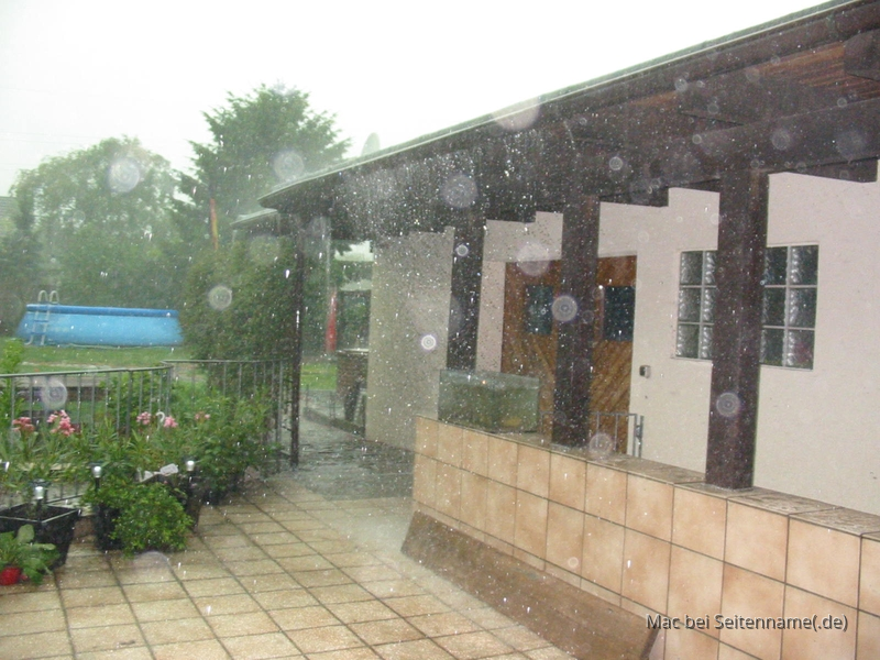 Hier ein paar Bilder von unserer Gartenansicht, während der Regen schon fast wieder nachgelassen hatte... (die Reservekamera musste erstmal klar gemacht werden...).