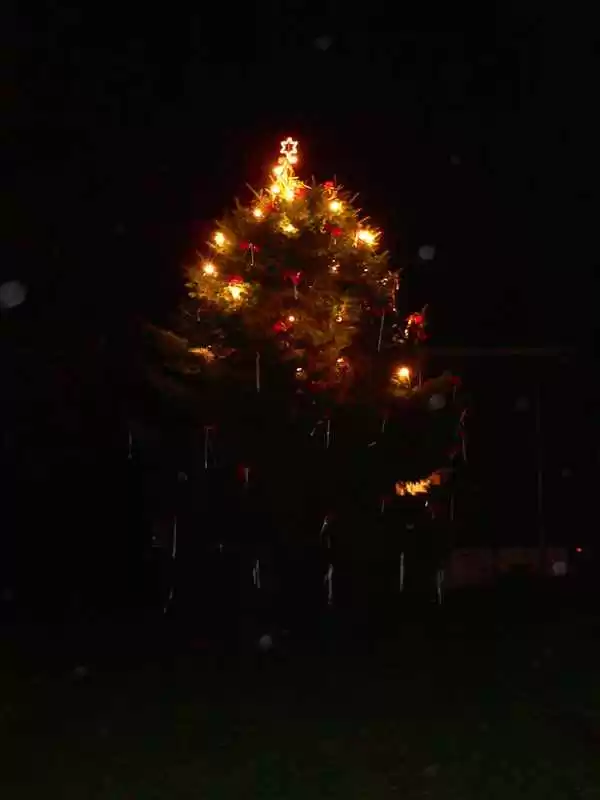 Habe nun auch endlich geschafft ein Bild von unserer Dorftanne zu machen (beleuchtet im Dunklen).