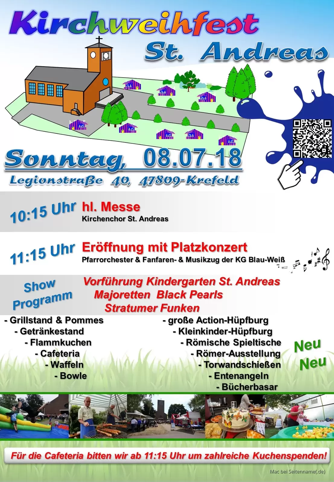 Legionstraße 40, 47809-Krefeld (Gellep-Stratum)Auch in diesem Jahr wird am 08.07.2018 das Kirchweihfest rund um St. Andreas ausgiebig gefeiert.