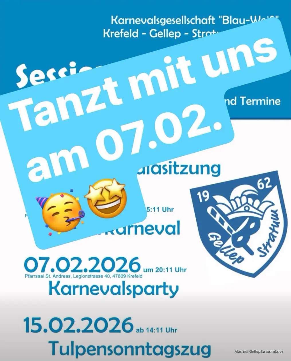 10. Februar 2026 um 18:44 Hat eine Antwort im Thema Karnevalssession 2025/2026 verfasst.BeitragIn den kommenden Tagen ist in Gellep-Stratum einiges los.